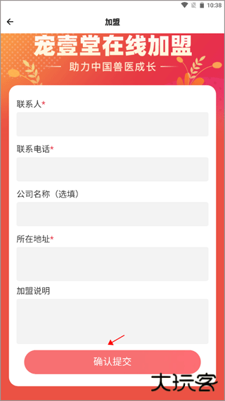 2、输入联系人的姓名和电话号码,公司的基本信息,填写加盟说明,最后点击确认提交即可。