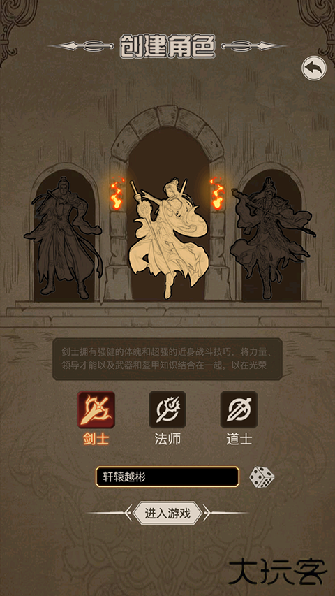 1、进入魔龙之旅官方版游戏后可以从剑士、法师和道士三职业选择一个。