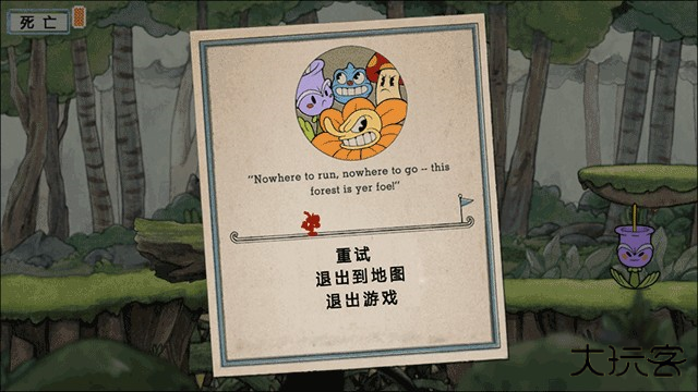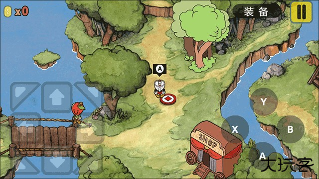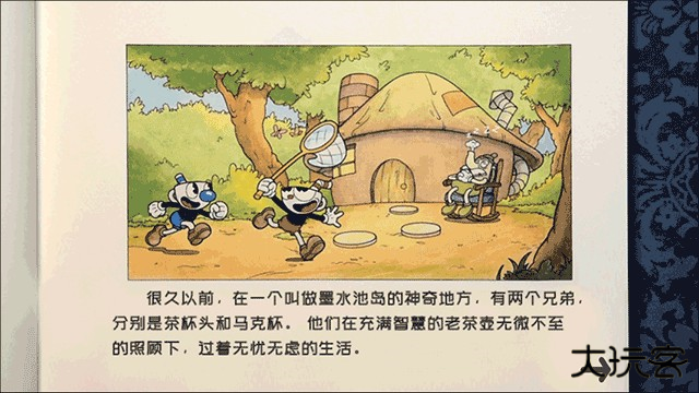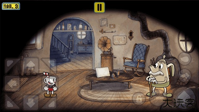 4、接着,在这里和茶杯头老爷爷对话,靠近它按下A键(跳跃键);