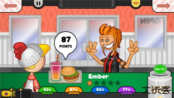 9、做完后,把餐点给顾客,顾客会给你评分,分越高获得的金币越高