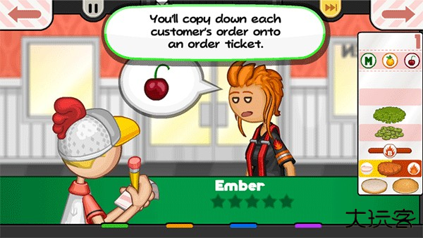 记录客人的要求,根据纸条上的内容制作汉堡,挑战不同口味的订单,提高经营管理的难度。