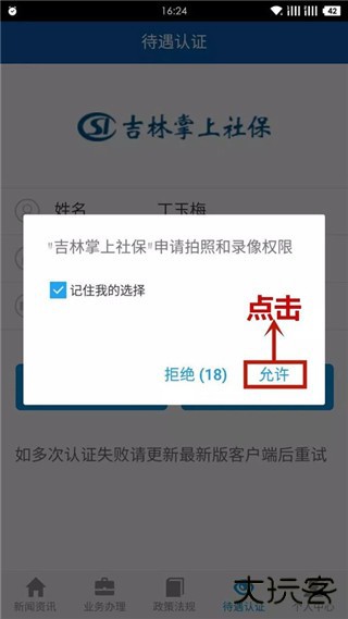 2、进入软件后,点击屏幕下方的【待遇认证】功能菜单