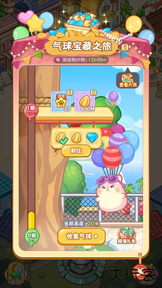 活动玩法: 放飞承载梦想的气球吧!通过合成指定的“活动订单”,为你的气球注入能量,让它越飞越高!每当气球达到一个新的高度里程碑,就能解锁对应的宝藏奖励!飞得越高,奖励越丰厚!