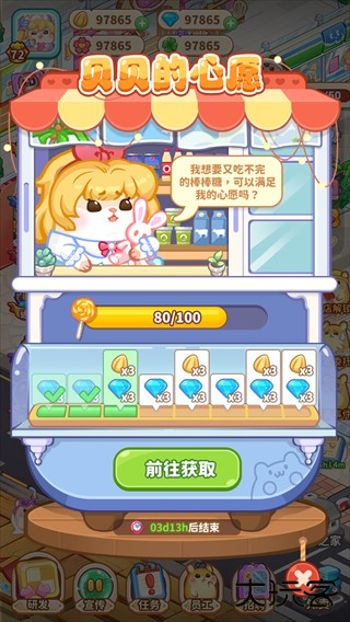 活动玩法: 我们可爱的小仓鼠贝贝有个美好的心愿!活动期间,合成订单将掉落各种口味的棒棒糖。把这些收集到的棒棒糖赠送给贝贝吧!每满足贝贝的一个小心愿,她都会回赠你超丰厚的谢礼!