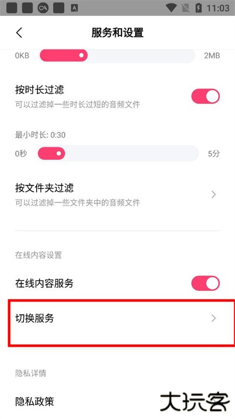 3、在服务和设置界面一直滑到最下方,点击切换服务;