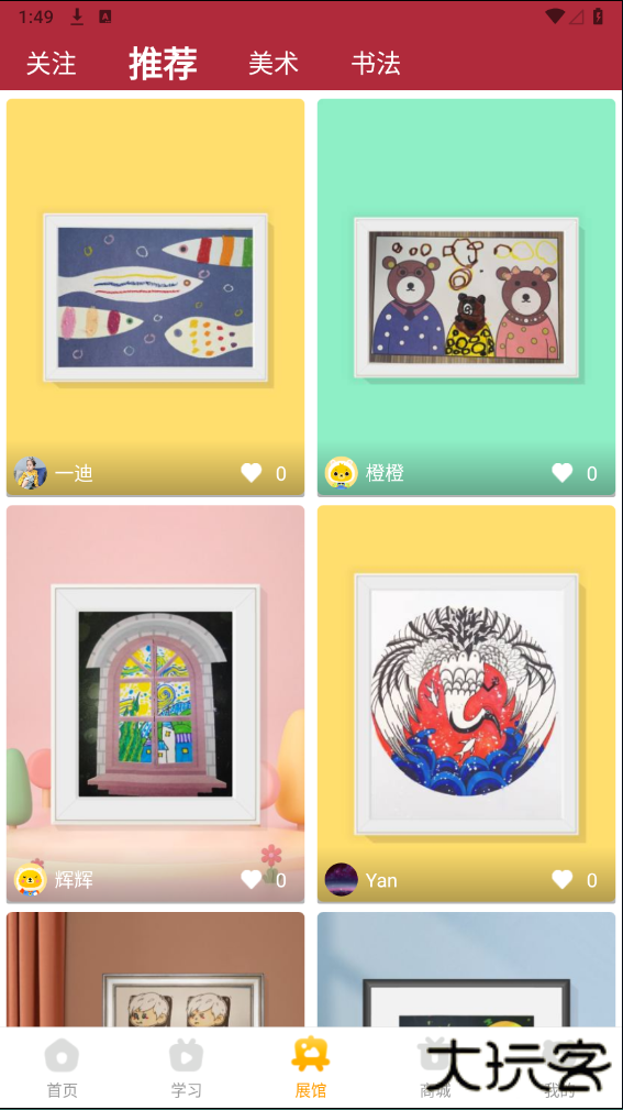 3、在【展馆】这界面可以欣赏别人画的画,还有美术和书法等