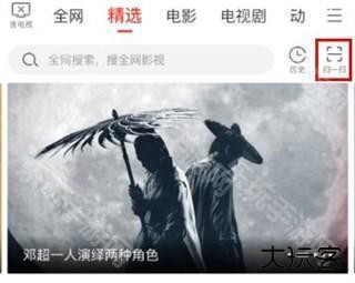 4、使用扫码连接,打开电视端多屏互动,找到二维码,进入手机端多屏互动“影视-精选”页面,点击“扫一扫”进入扫码页面,扫描电视端多屏互动二维码