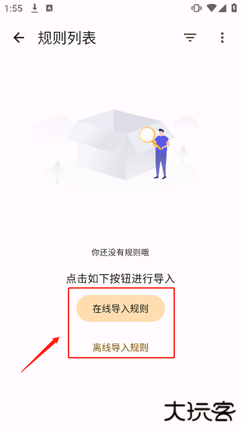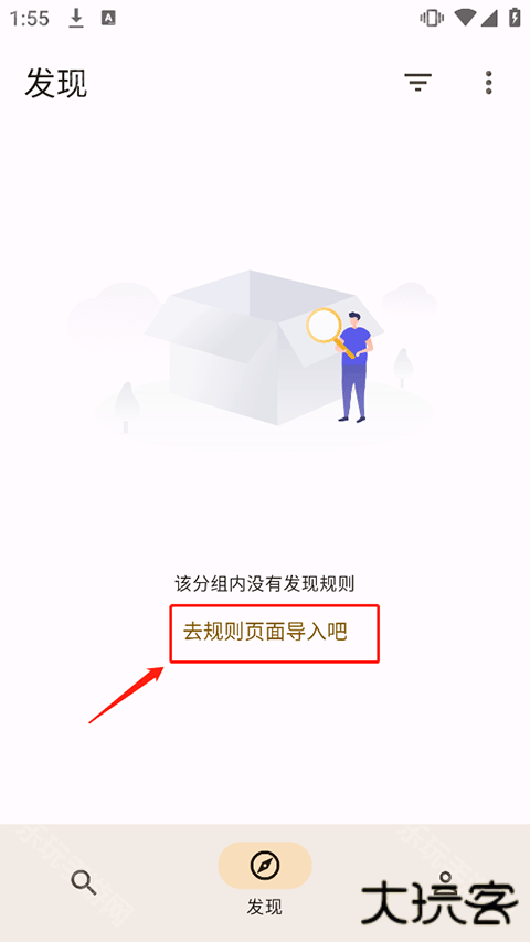 1、在app发现界面中点击去规则页面导入