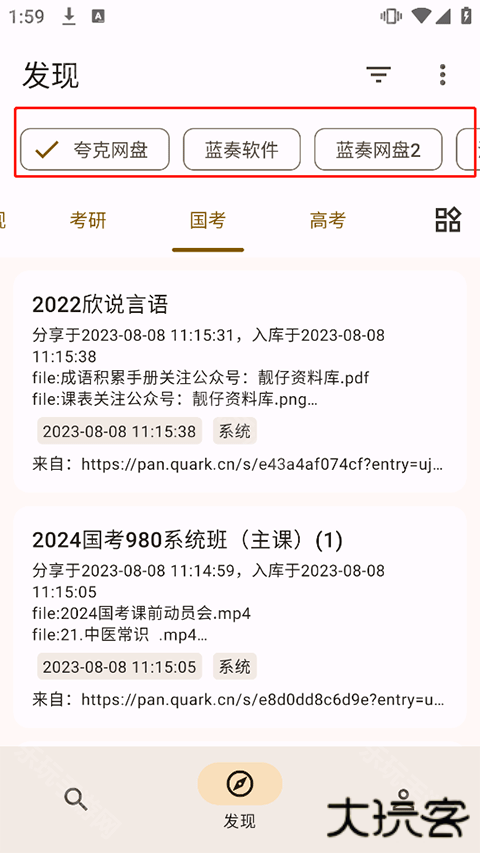 1、除开存放功能外,软件还有着强大的搜集功能,帮我们检索各种需要的资源。