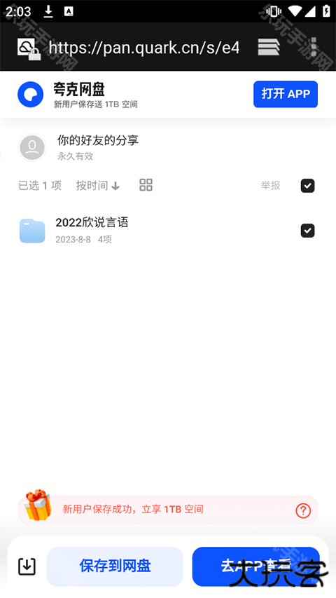 6、复制链接的话就让前往对应网盘app内打开,直接打开资源链接可以在线保存至目标网盘内