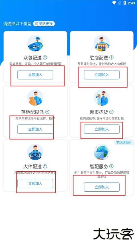 1、在本站下载安装并打开软件,使用电话号码进行注册,然后选择自己想要加入的骑手类型,小编这里选择了众包配送。