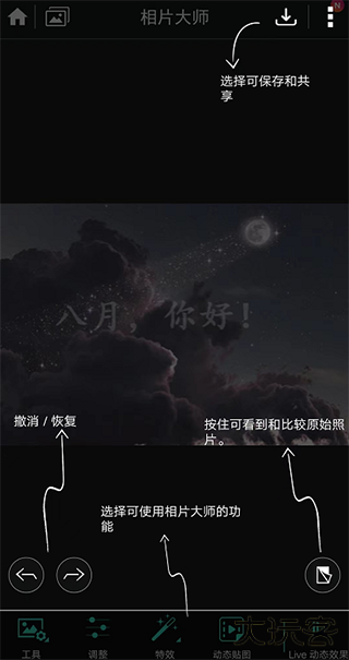 相片大师是一款非常实用的照片编辑软件,软件为用户提供了超多专业的照片编辑工具,支持色调调节、添加滤镜、插入文字等功能,让用户的照片拥有更多的个性化内容。而且软件操作简体的同时还为用户提供了详细的新手教学,用户只需根据教程上手实用两次即可熟练的掌握各个工具的实用方法。