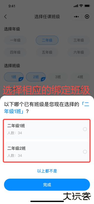 注意:如果老师已有班级的话,请注意选择绑定班级