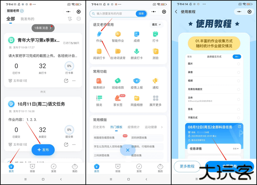 进入班级小管家---发布按钮---发作业----进入发作业的页面