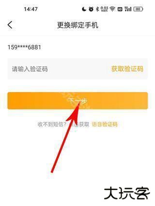 4、之后我们会进入到更换绑定手机页面,我们需要获取验证码,然后输入验证码,在点击下一步;