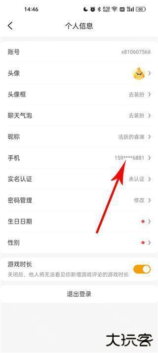 3、在个人信息页面中,往下数第六个看到手机,点击进入;