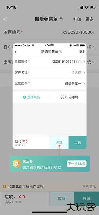 3、在对销售的商品进行收款