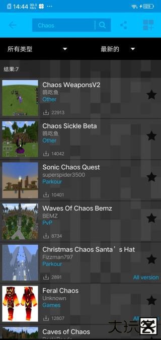 4、如果混沌模组没有用就把它的资源包和行为包放到最上面。你学会了吗?第一张图是混沌模组搜在这个软件里搜索Chaos第一个。