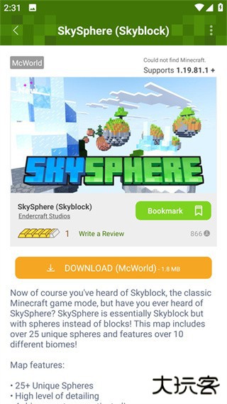 2、随便点击一个主页的地图模组或是找一个自己喜欢的模组,主页就是地图模组,点击就会跳转至新界面;在此界面寻找到DOWNLOAD,点击即可下载;