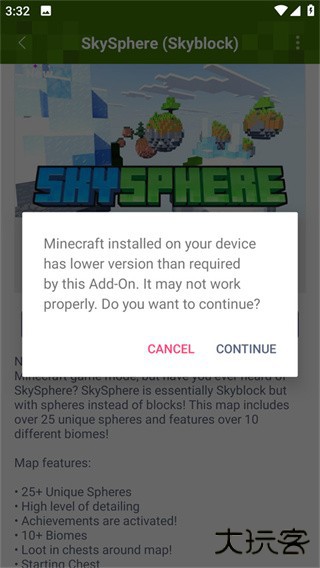 5、在此界面点击CONTINUE,点击完成导入了,随后会自动跳转至我的世界游戏,玩家就可以上线畅玩啦!
