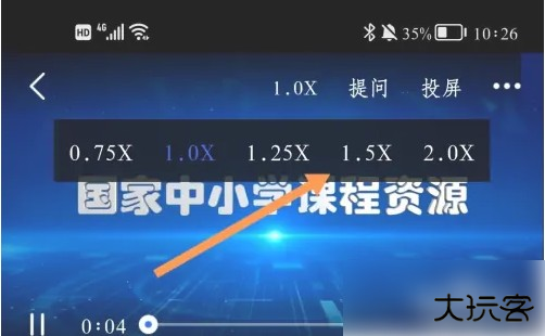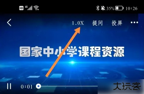 第四步,播放后,轻点一下视频中间页面,直至出现图示菜单栏,点击页面上方的【1.0X】