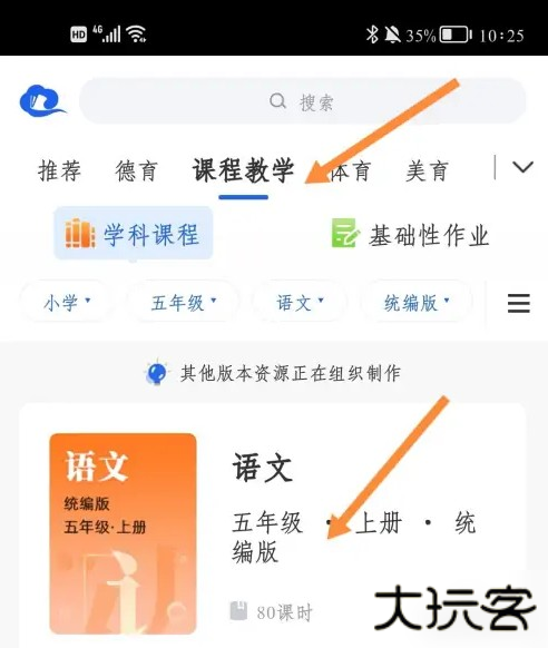 第一步,打开应用【学习】页面,点击顶部分类中的【课程教学】,接着点击页面中的科目,如图所示