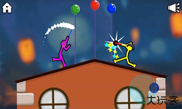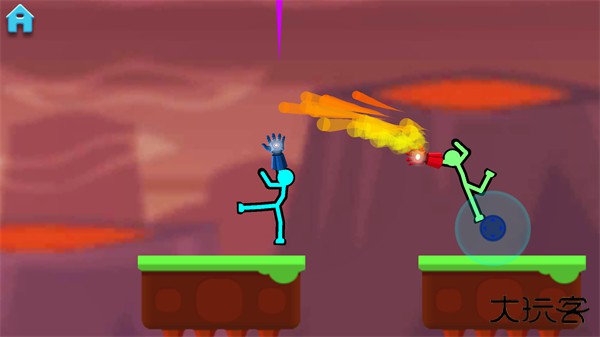 玩家在游戏中操控一个火柴人,利用简单的横版摇杆操作操控火柴人进行热血格斗。