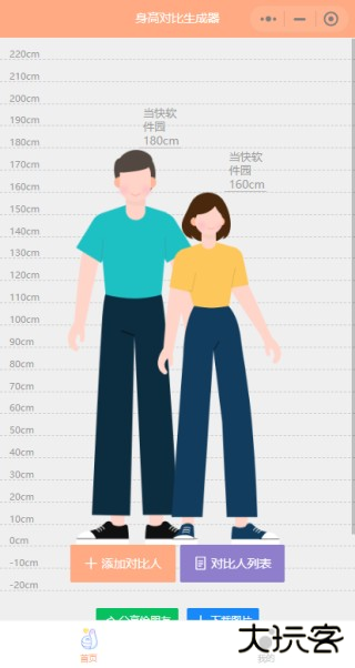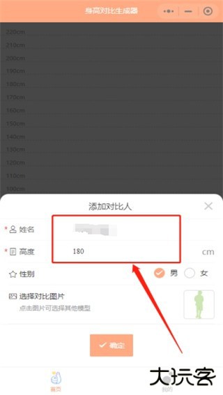 6、输入另一个人的姓名和身高,选择对应模型,即可显示两人的对比图。