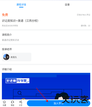 3、进入课程界面后,点击右下角的“加入学习”即可开始学习。