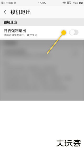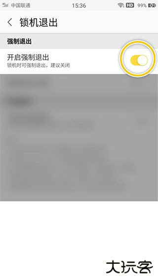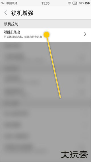 3、在“锁机增强”设置项中,点击“强制退出”列表项。
