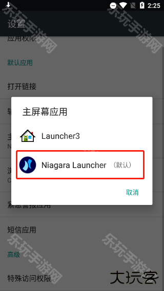 6、除此之外,在系统设置“主屏幕应用”中,我们需要将其切换成“niagara launcher”