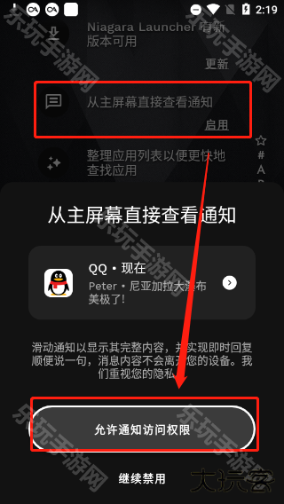 3、弹出通知选择后,选择到“niagara launcher”点击允许