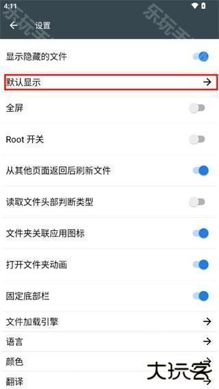 2、在设置界面中,点击默认显示选项。