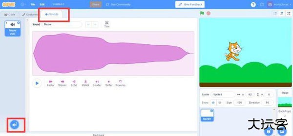 1、在积木区,点击【Sounds】选项卡,点击【选择声音】;