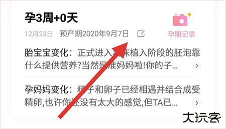 1、首先打开软件,进入软件之后首页可以看到预产期的日期,旁边有一个编辑按钮;