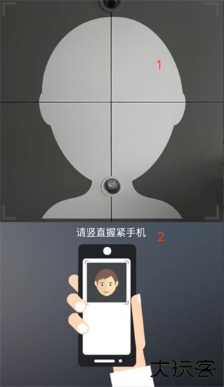 3、将脸部置于上图“1”位置正中央;