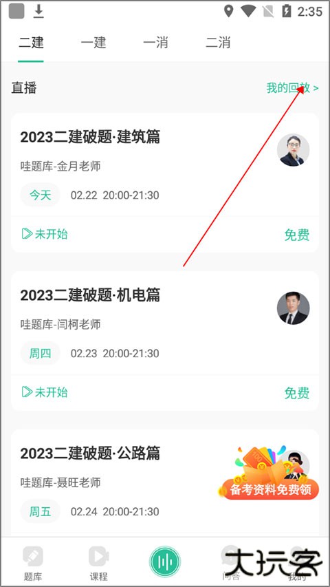 2、然后点击“我的回放”进入即可观看回放了。