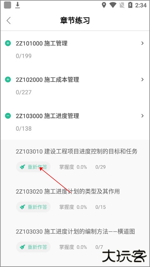 2、选择练习的栏目,然后点击 “重新作答”即可。