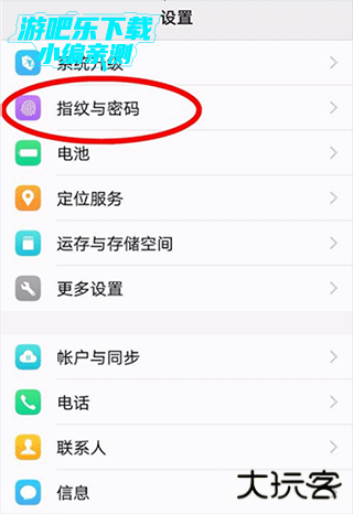 2、在设置页面选择指纹和密码按钮;