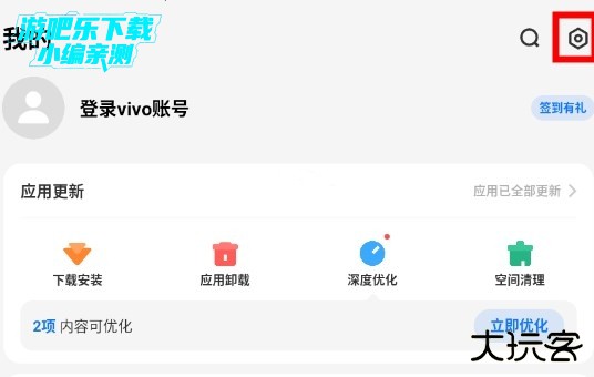 打开vivo 应用商店 → 点击右下角我的 → 右上角设置图标(齿轮)