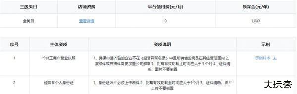1、点击查看资质要求(不同的店铺类型)主营类目所需的入驻资质不同)。