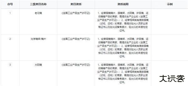 “老花镜”、“光学镜架/镜片”、“太阳镜”类商品,您还需上传下列行业资质:
