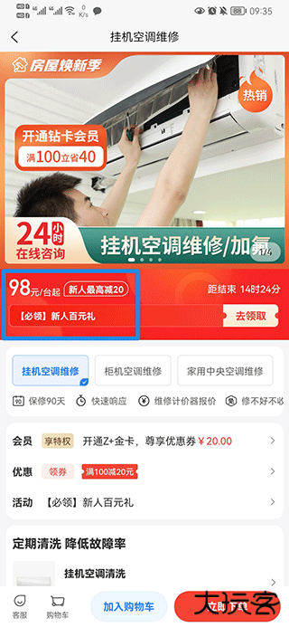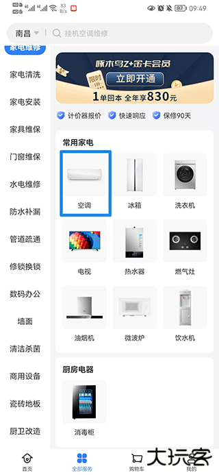 一、首先打开啄木鸟家庭维修app,选择自己需要的服务,如空调维修。