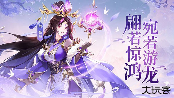 再来说说甄姬,甄姬是三国时代著名的美人,比起大小乔更有知名度和人气,而比起貂蝉又更多了一分神秘色彩。相传甄姬是洛水神仙,因为后羿和河伯为了争夺她而大打出手,所以被罚来到人间历劫。多了这个动人的传说,甄姬这个女子就更加让人好奇,她到底有多美?《洛神赋》中用“翩若惊鸿,婉若游龙”来描写甄姬的神仙姿态,更让人心生向往。而在游戏中,甄姬手持神兵洛神泪,紫衣法袍加身,发冠紫流苏,额点眉心坠;皆采用神秘紫立绘画风,贴切甄姬本身洛水神仙的神秘色彩。这样有着惊鸿之资的绝色佳人,小将军不来游戏欣赏一番吗。