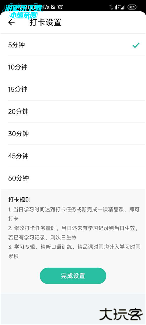 3、用户可按照自身学习情况进行调整,然后点击【完成设置】就可以啦。