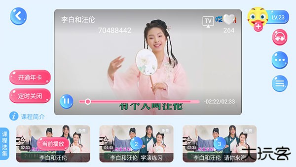 4、点击对应的视频课程,支持字幕、可以随时暂停,还可以点赞、设置定时关闭。