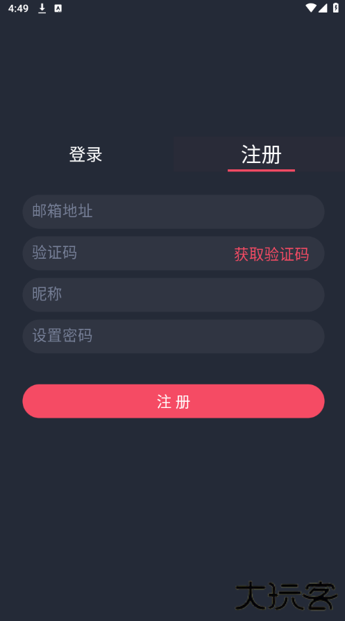3、再点击注册按钮,输入邮箱,需要回答问题后才可以获取验证码,再输入昵称和密码即可注册账号。