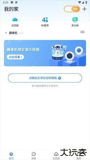 3、登录成功之后进入首页,有很多功能可以使用,包括云回放,多分屏,4G服务。