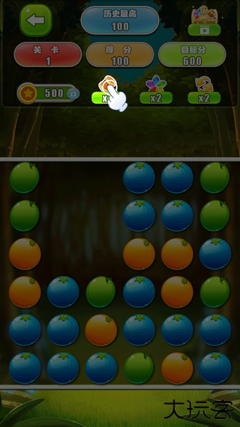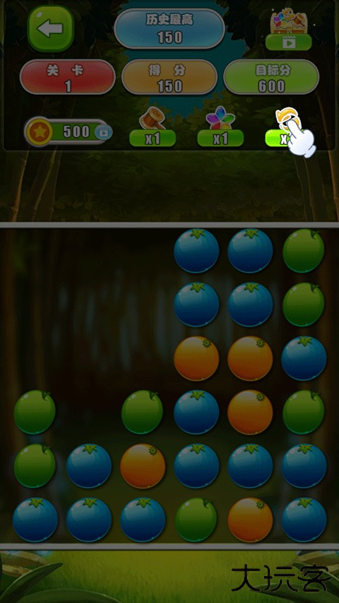 2、点击上方的道具“锤子”选择要清楚的水果,即可帮助你消除更多的水果哦。