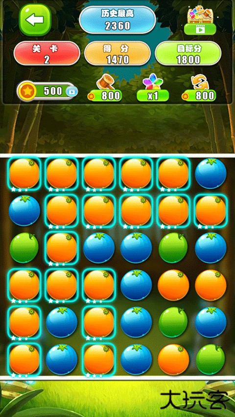 1、相邻同款水果一键爆破。